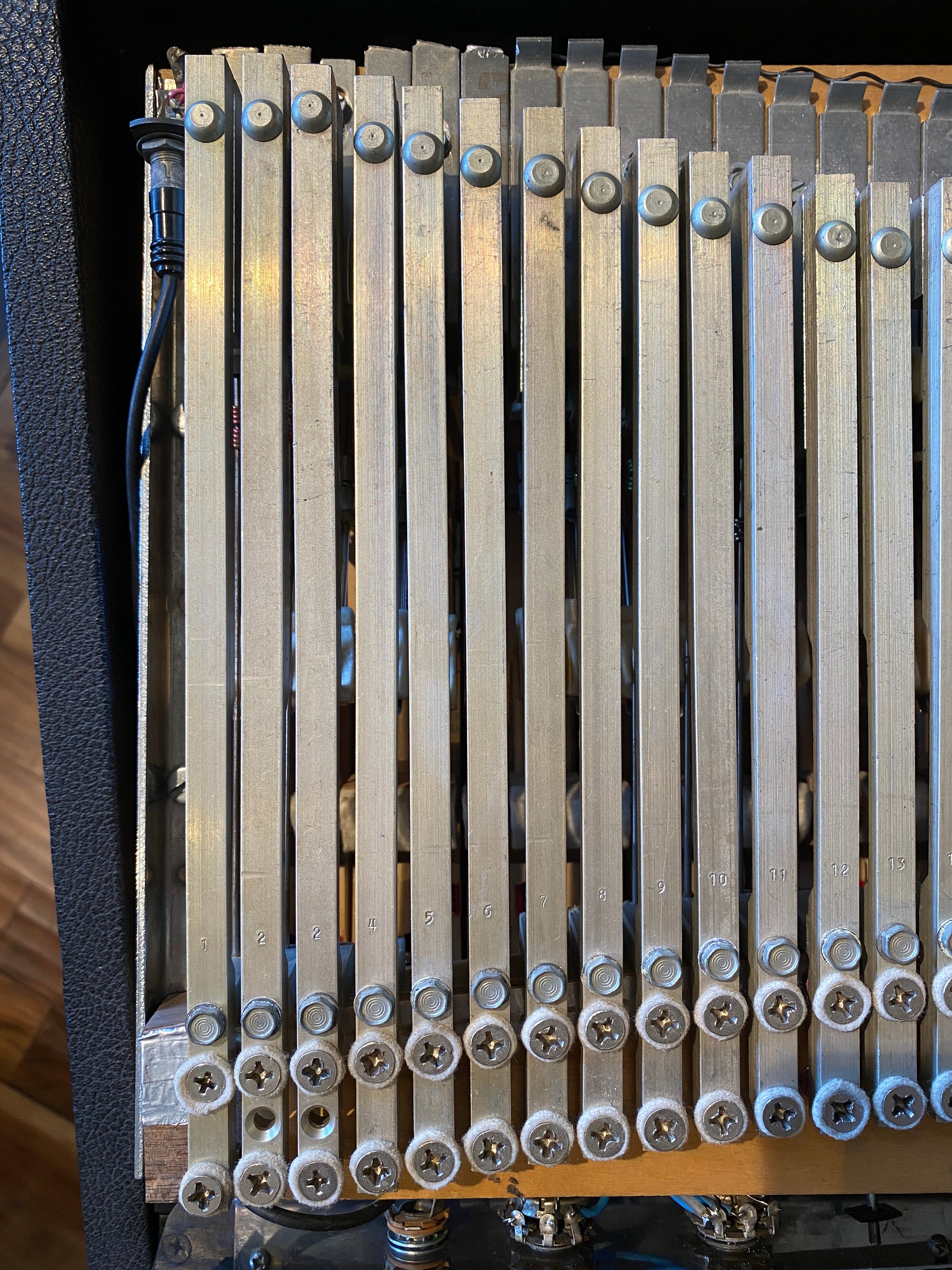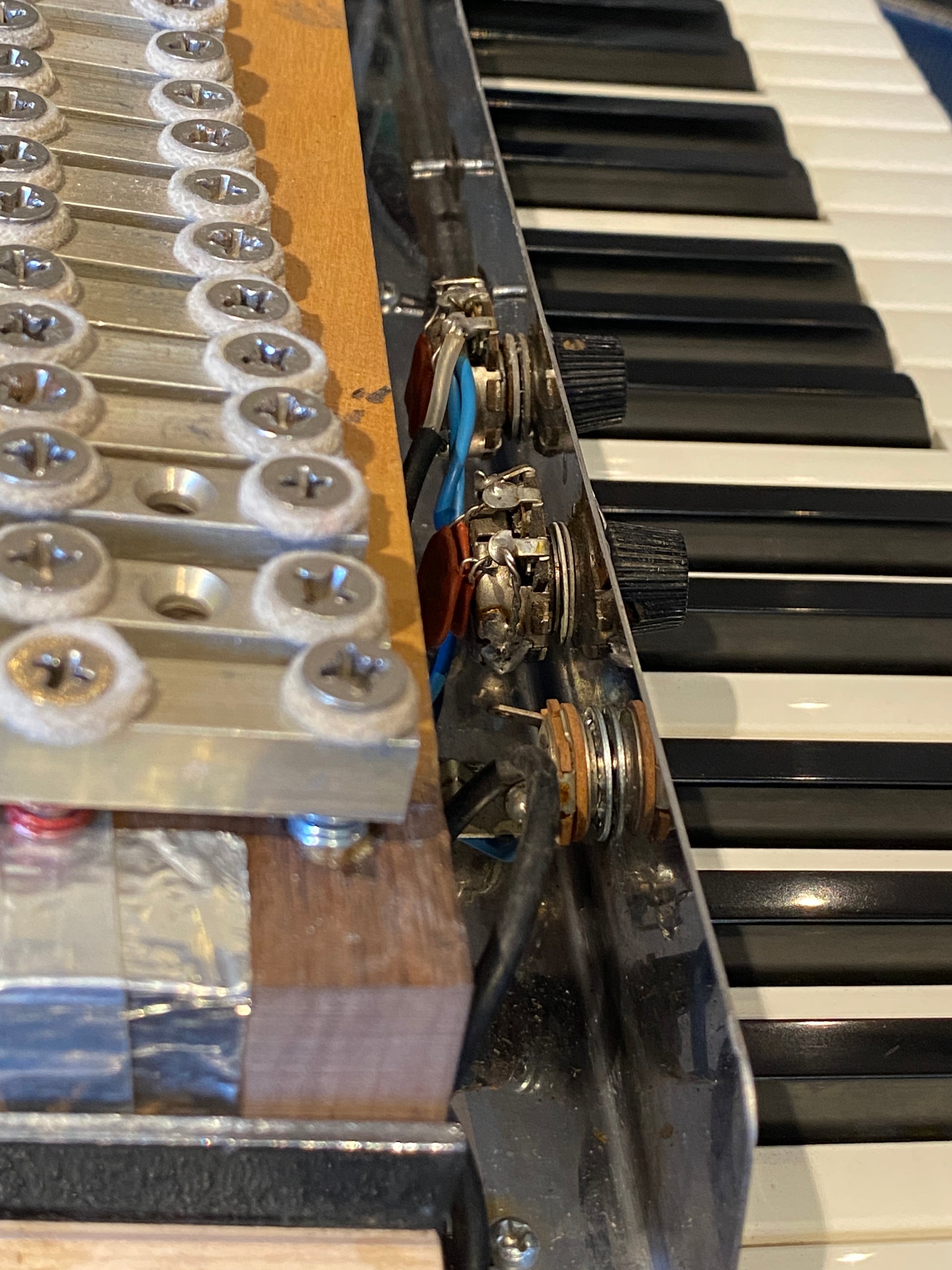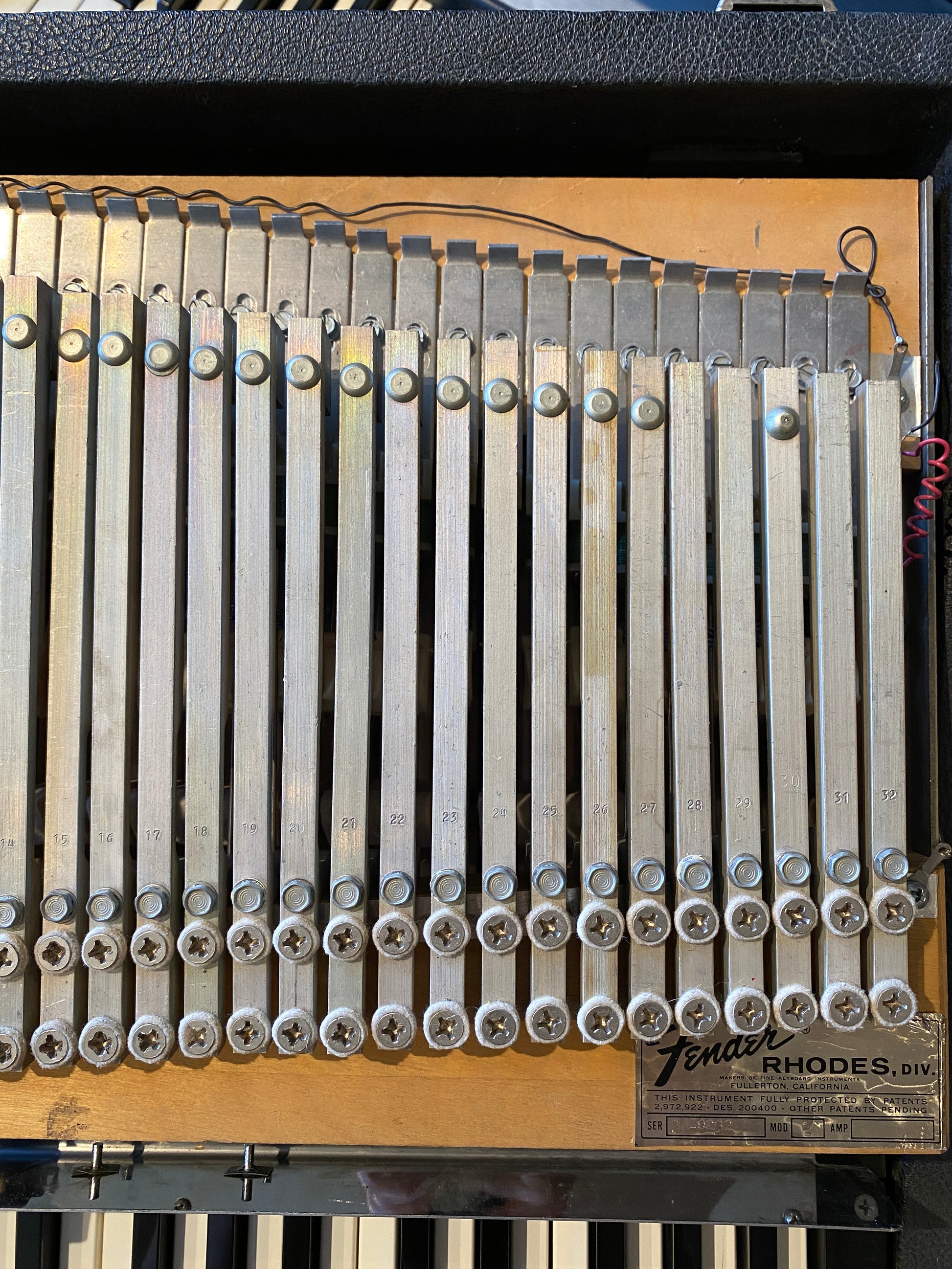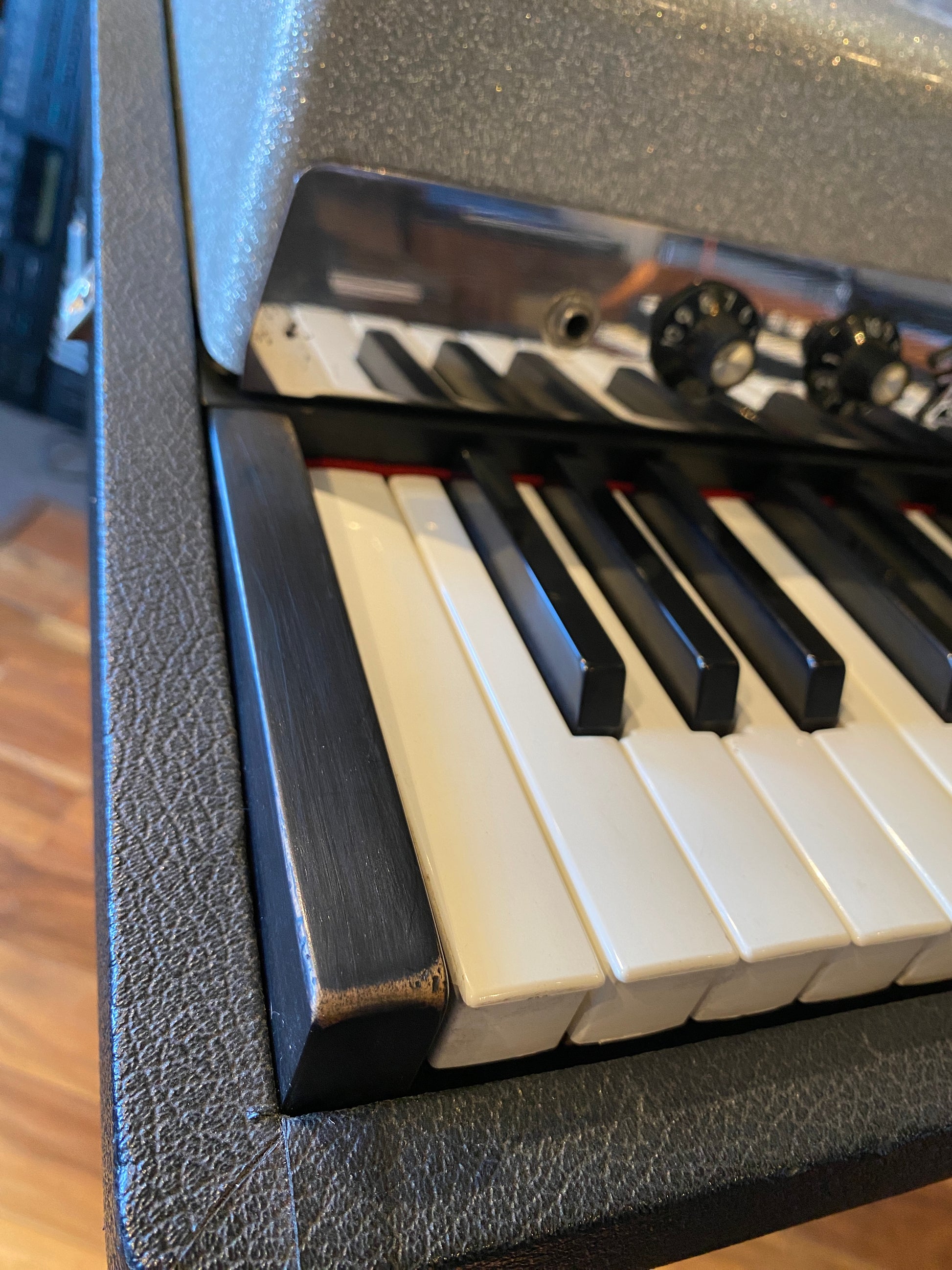 1967 Fender Rhodes Piano Bass, fully serviced and in great playing condition. The Piano Bass was one of the first Rhodes models produced and was popularized by Ray Manzarek of The Doors and others. Features 32 keys / 2.5 octaves from a low E to a B, made to cover most of the range of a 4-string electric bass. With a nice solid and smooth hammer action playfeel and rich, full, dynamic tones, this instrument will make a great addition to any keyboardist’s rig looking to cover the low end with an all-analog (and very stylish!) keyboard. Beautiful!