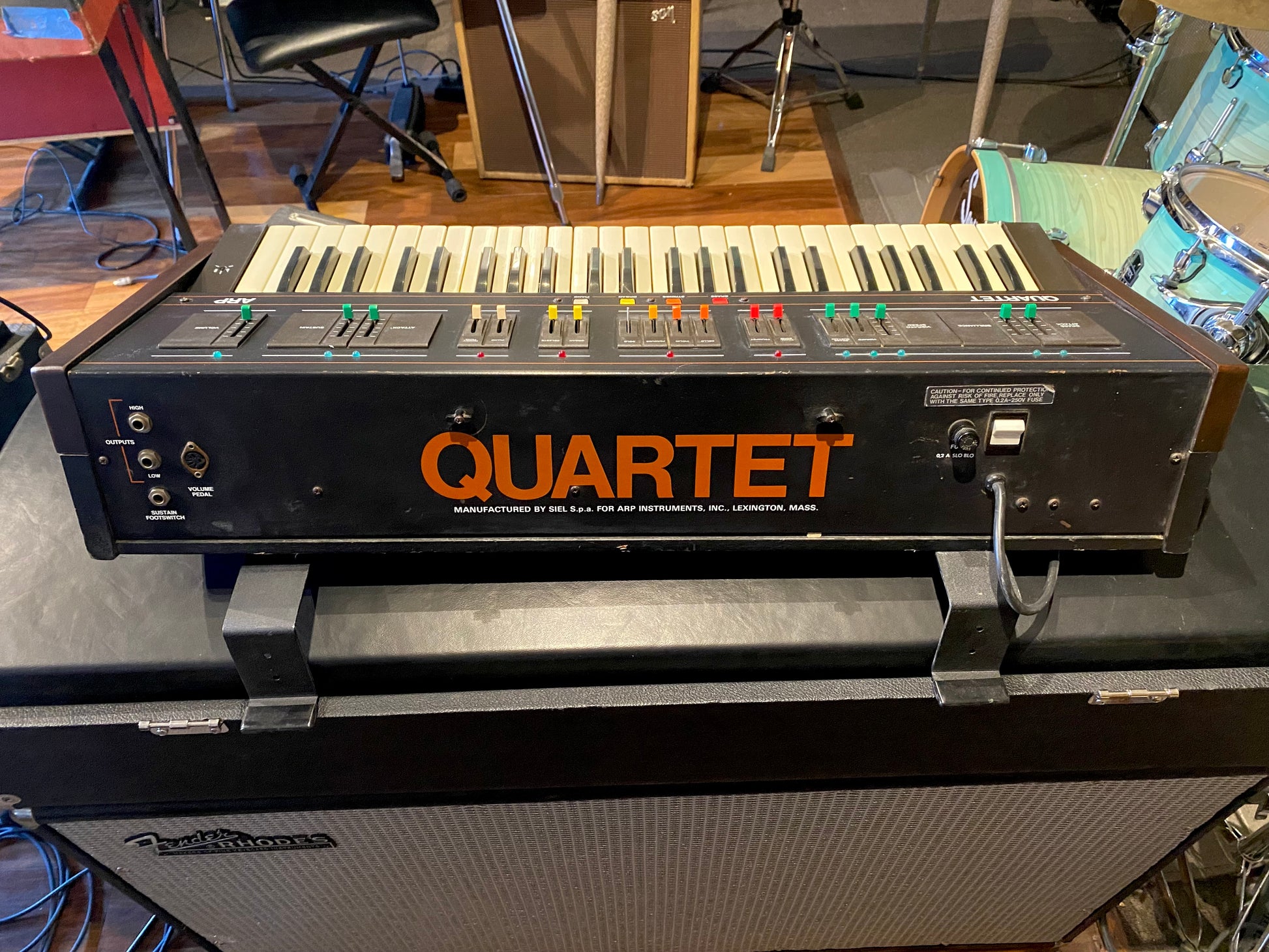 The ARP Quartet is, in fact, identical to the Italian-made Siel Orchestra. ARP bought, relabeled and sold it as the Quartet without changing much. It's a 4-part orchestral synthesizer with 4 sections: Brass, Strings, Organ and Piano. These 4 tone color families can be tweaked and played individually or two can be played simultaneously. Selected presets will light up LEDs to show you which sliders and buttons can be used to modify the current section. The synth itself is somewhat limited--there is no external control, no pitch/mod wheel and few editing parameters. However, it sounds very good and, ultimately, it is a classic analog synthesizer.