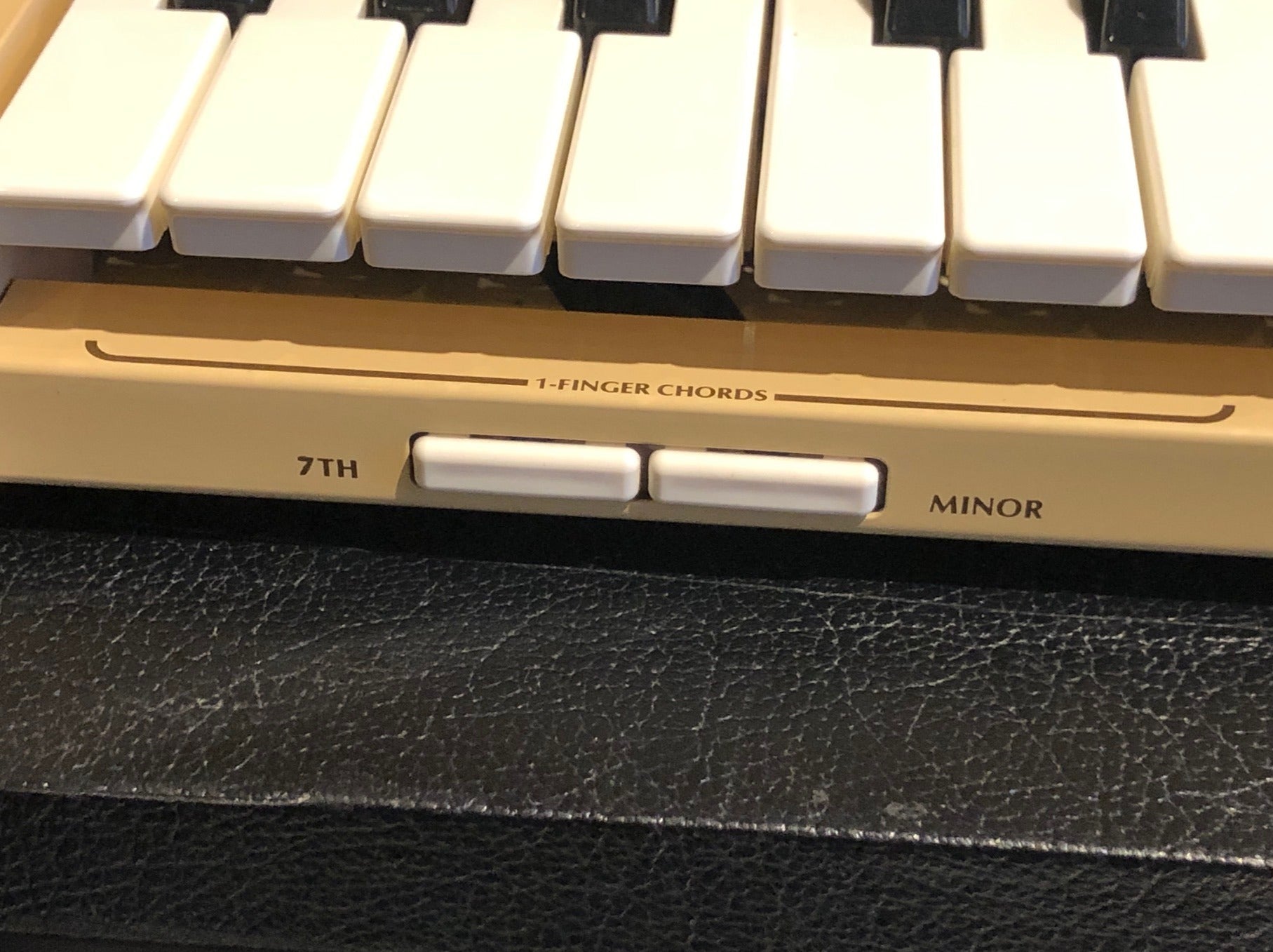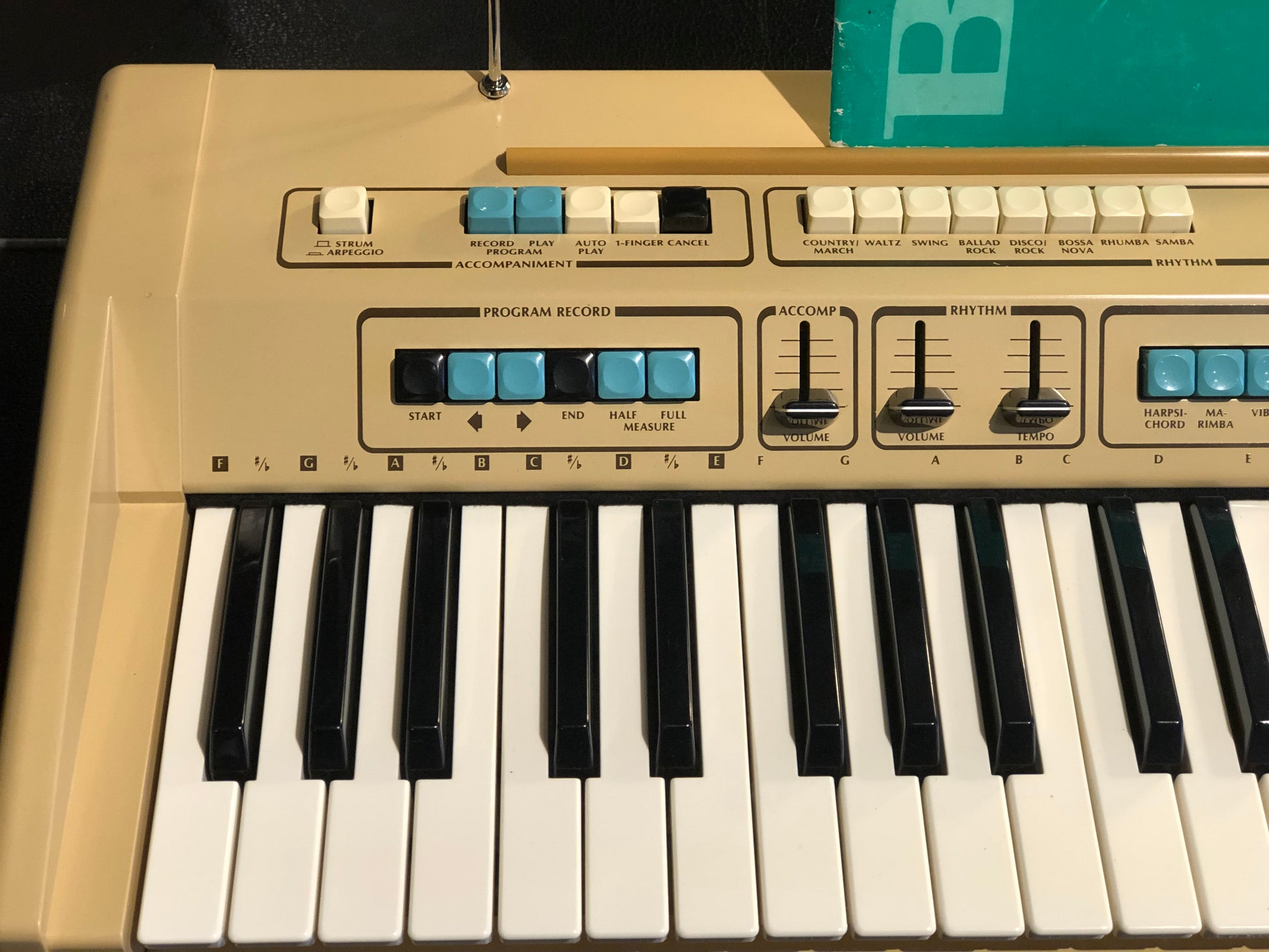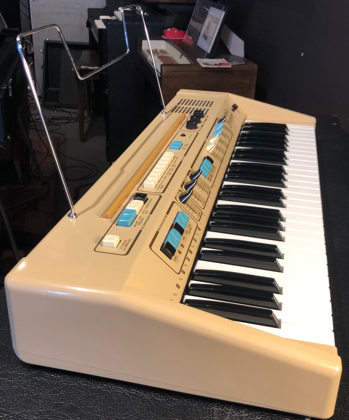The Baldwin Discoverer DS-50 came out in mid/late 70s (pre-MIDI) and features control over the synth sounds plus a built in drum machine. All original knobs are present.
