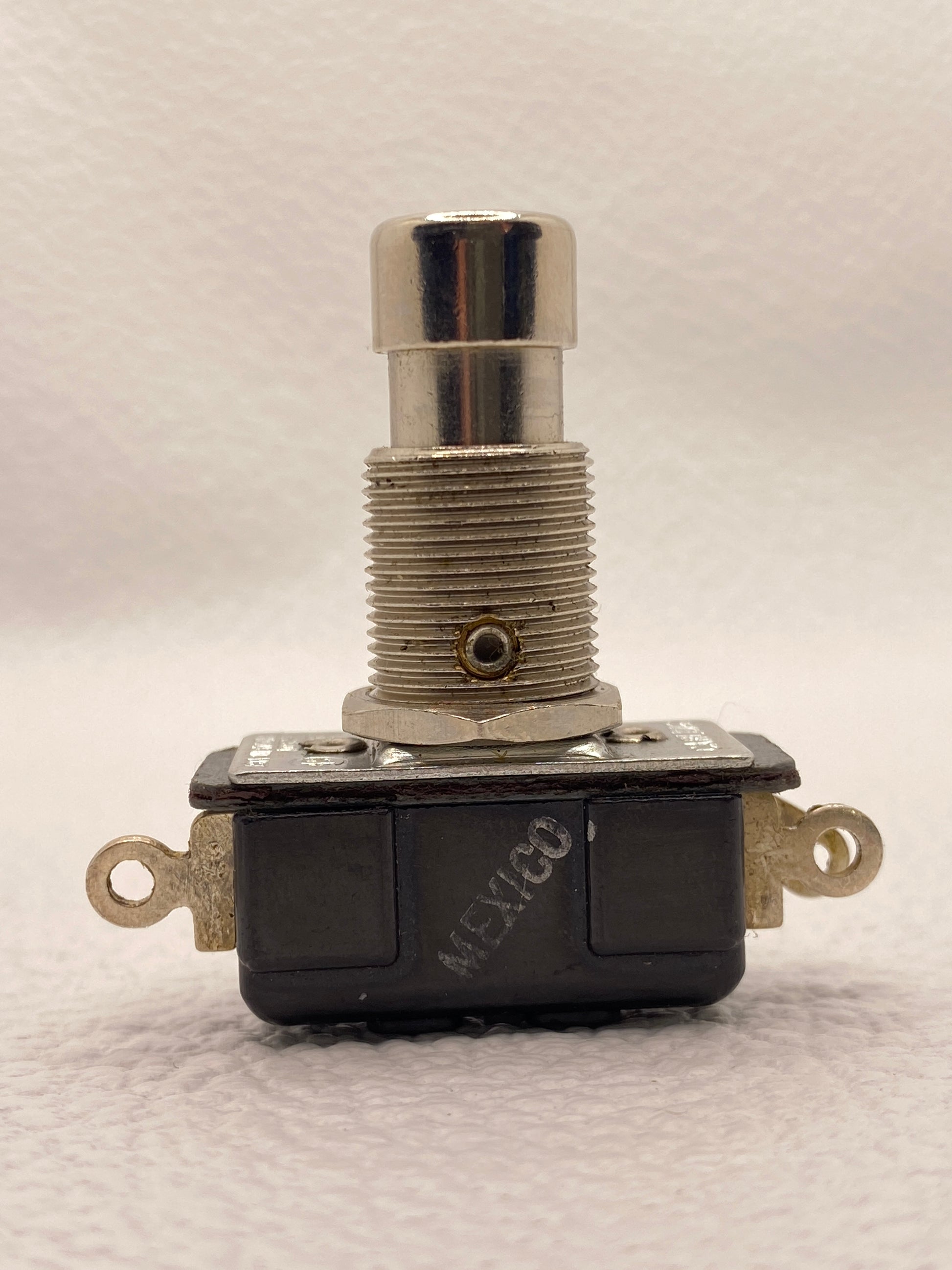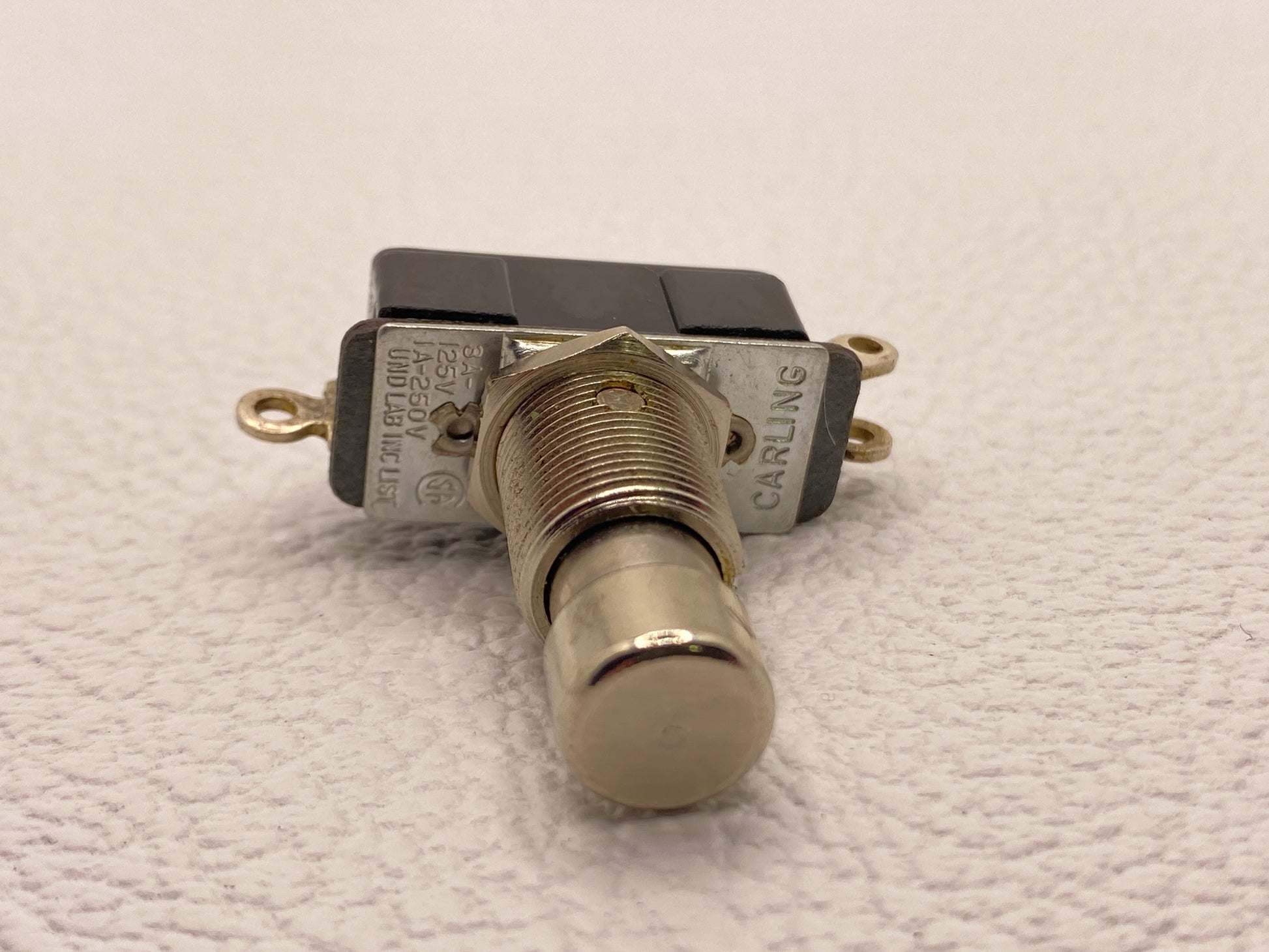 Vintage unused Carling latching footswitch. This product is an original vintage part and may show some minor cosmetic signs of aging.