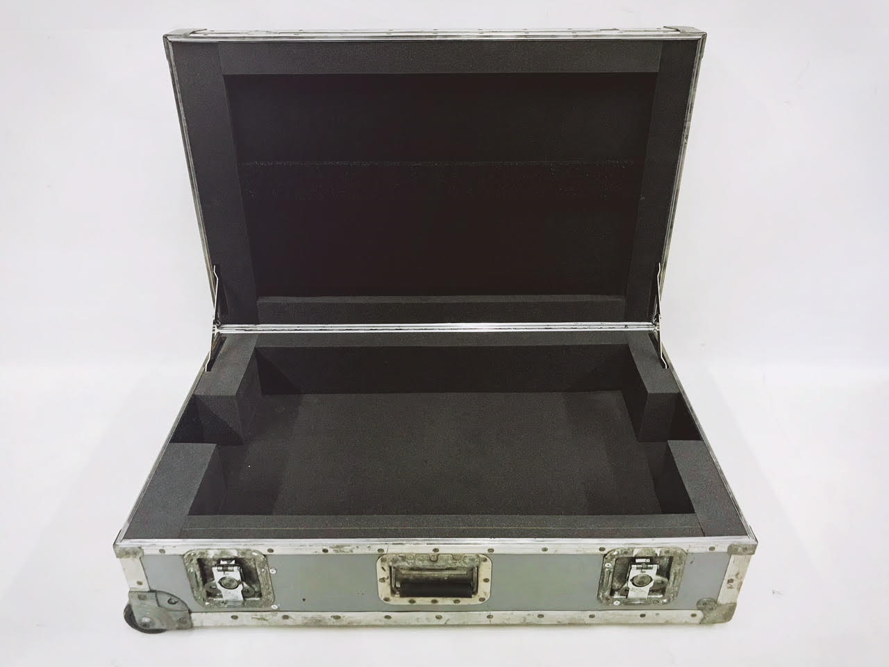 New Heavy duty road case with band new custom foam fitted for a Mini Moog model D with wheels.